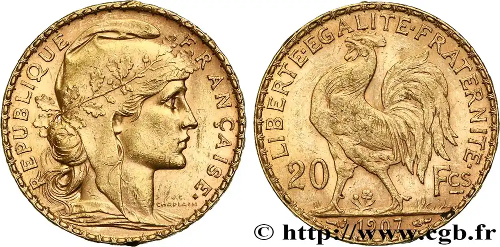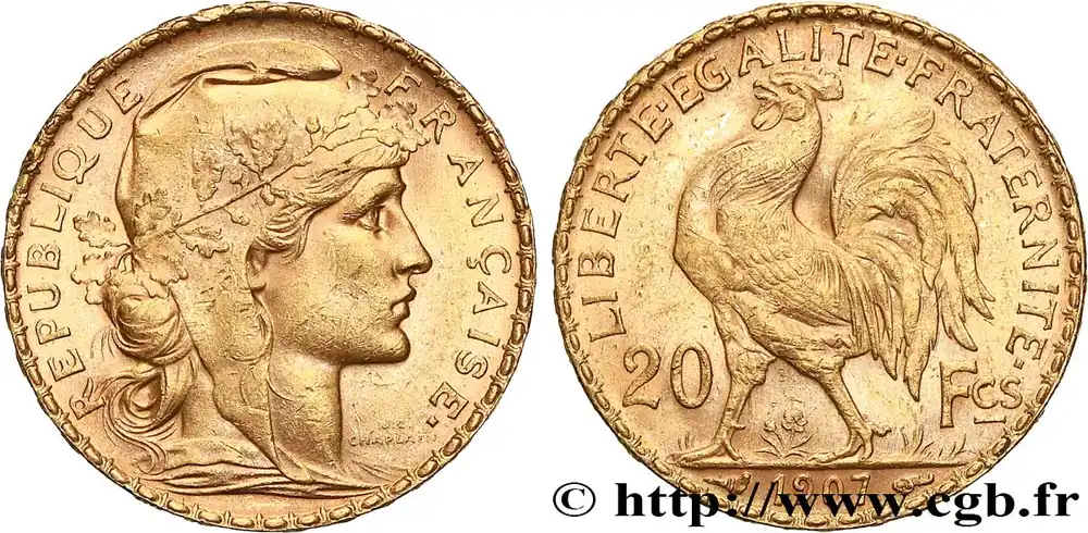 20 francs or Coq, Liberté Égalité Fraternité 1907 Paris F.535/1 fmd_624370 Modernes Achetez Aujourd’hui