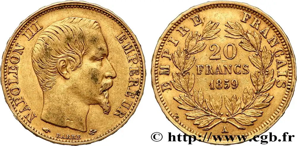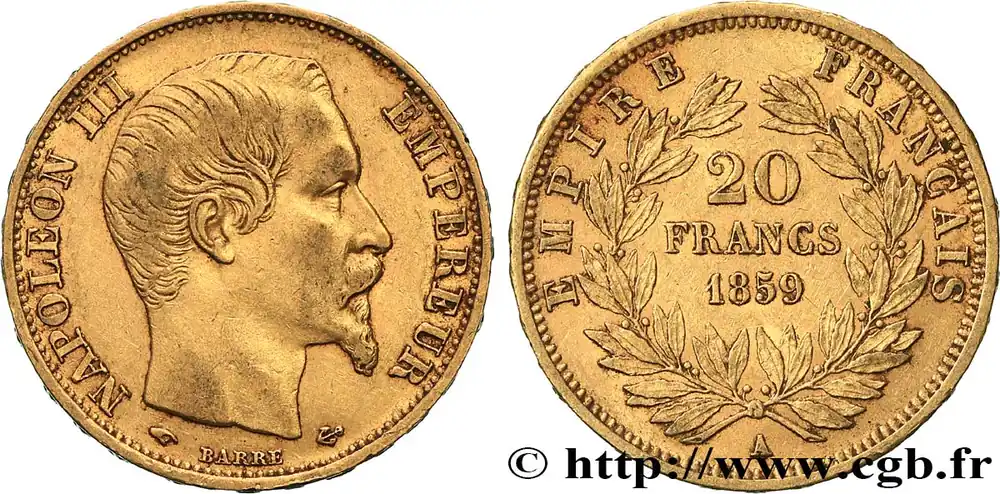 Expédié Aujourd’hui 20 francs or Napoléon III, tête nue 1859 Paris F.531/15 fmd_617879 Modernes