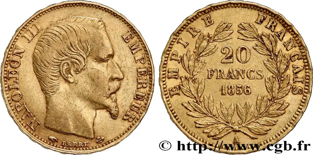 Soldes 20 francs or Napoléon III, tête nue 1856 Paris F.531/9 fmd_605850 Modernes