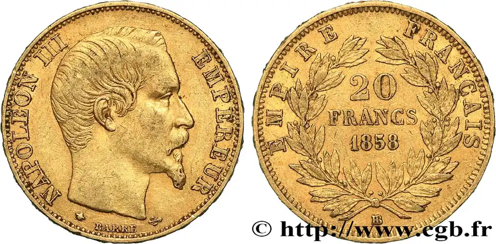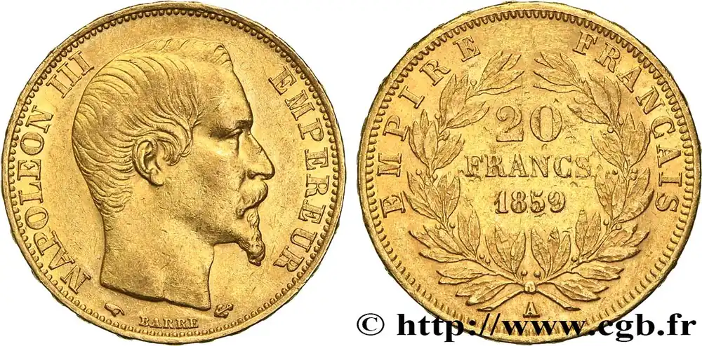 20 francs or Napoléon III, tête nue
