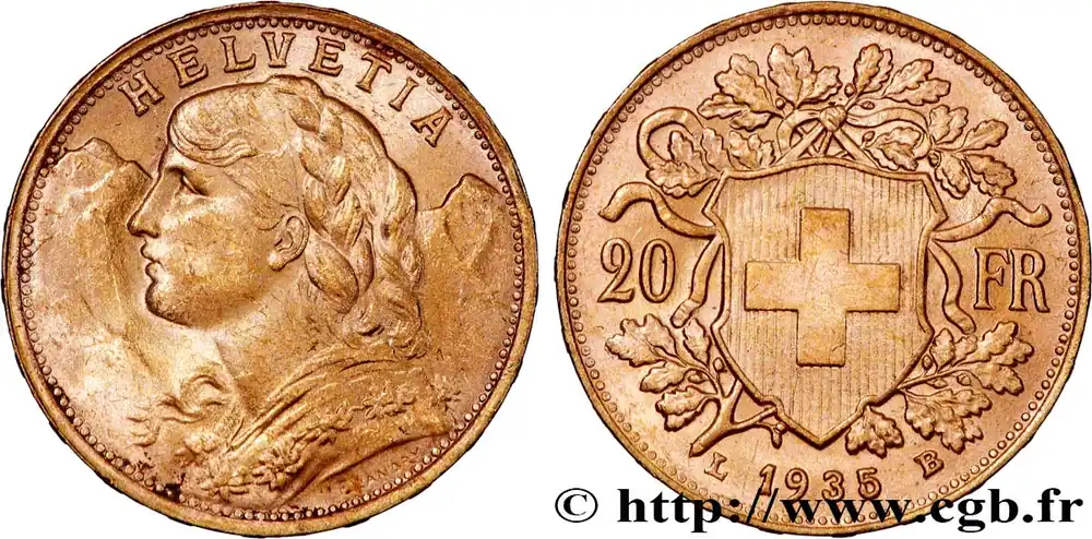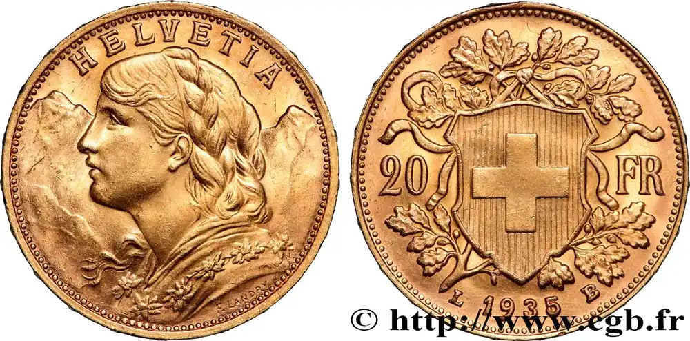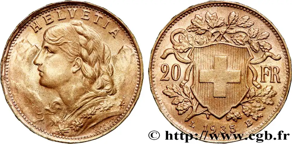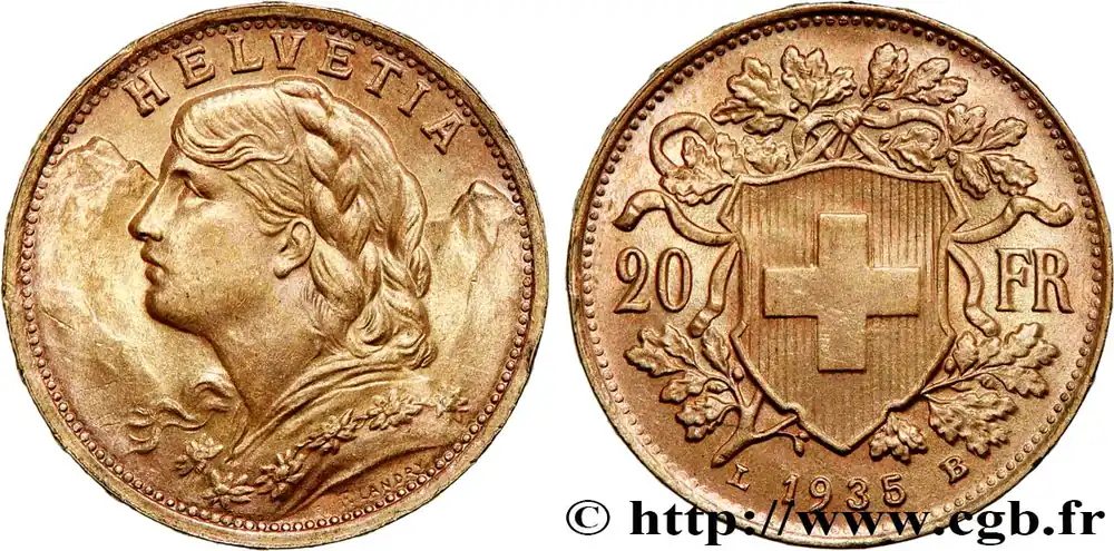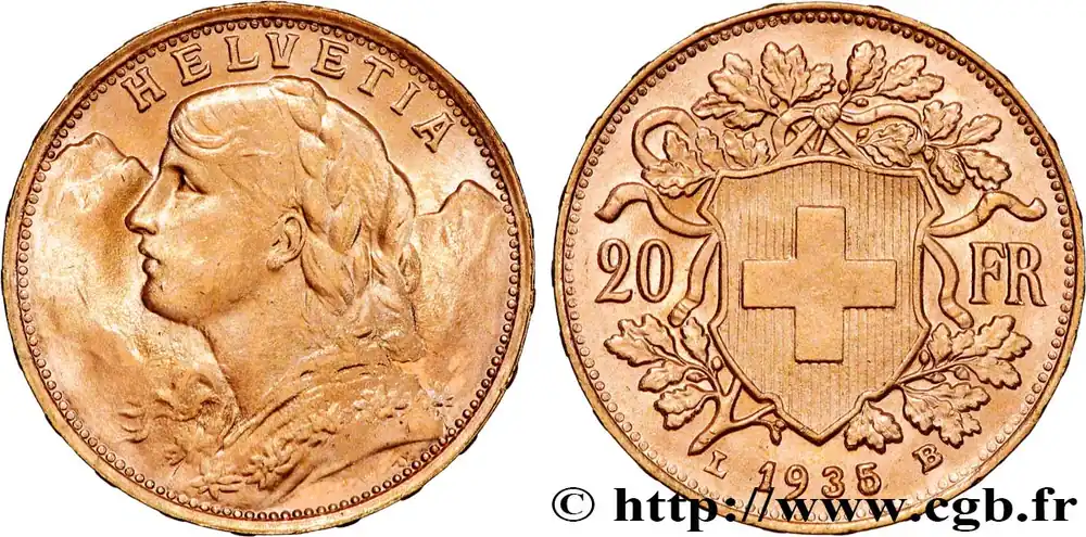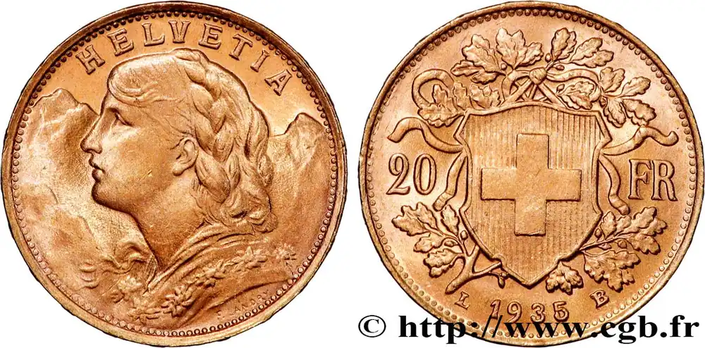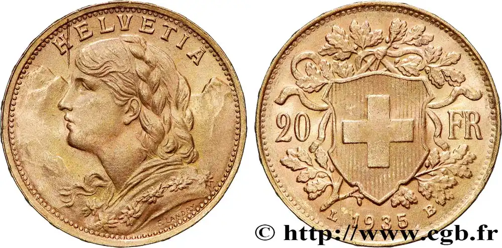Livraison Express OR, PALLADIUM ET PLATINE INVESTISSEMENT 20 Francs « Vreneli » 1935 Berne fwo_815523 Monde
