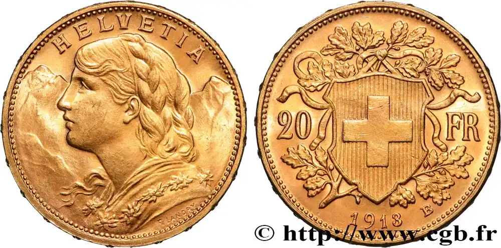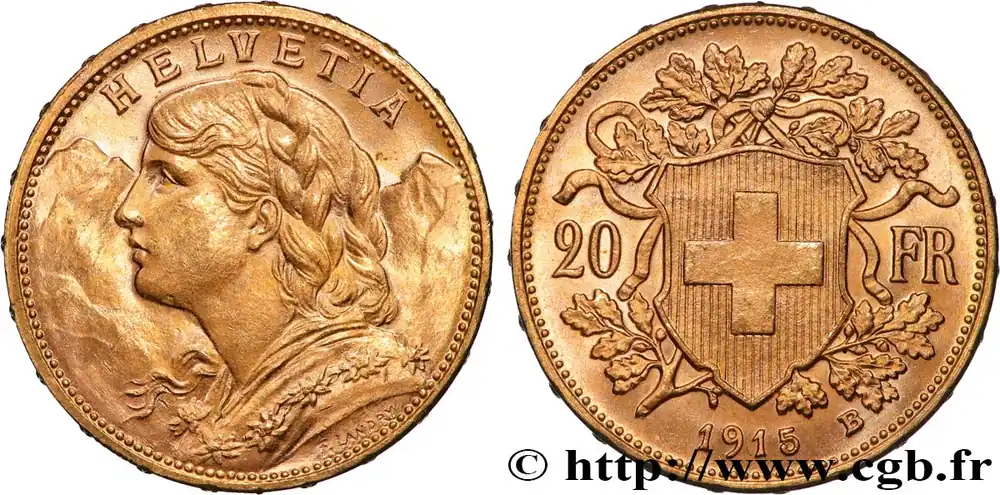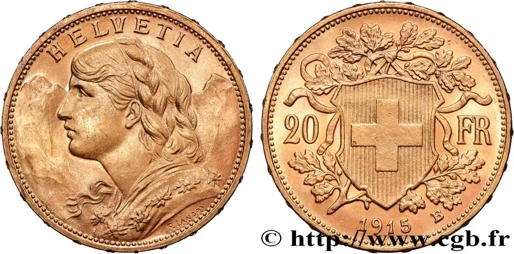 Livraison Mondiale OR, PALLADIUM ET PLATINE INVESTISSEMENT 20 Francs « Vreneli » 1915 Berne fwo_884418 Monde