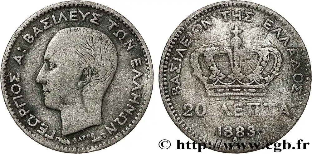 GRÈCE 20 Lepta Georges Ier 1883 Paris fwo_788193 Monde Petit Prix