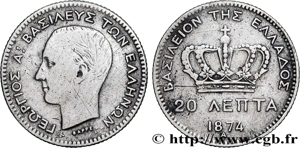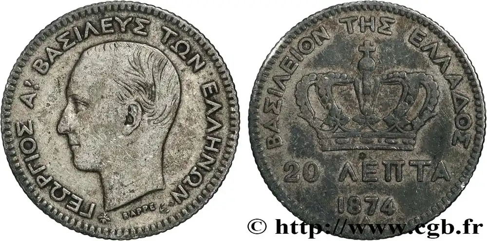 GRÈCE 20 Lepta Georges Ier 1874 Paris fwo_852899 Monde Petit Prix