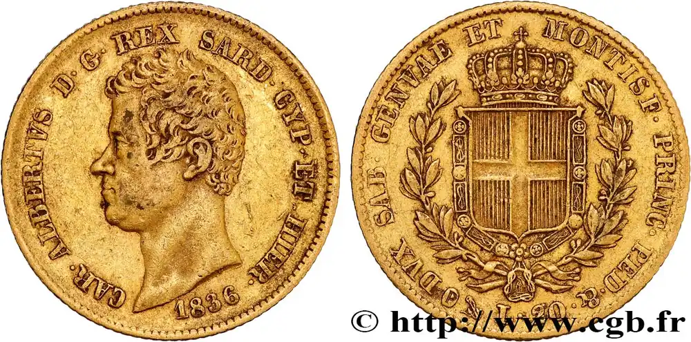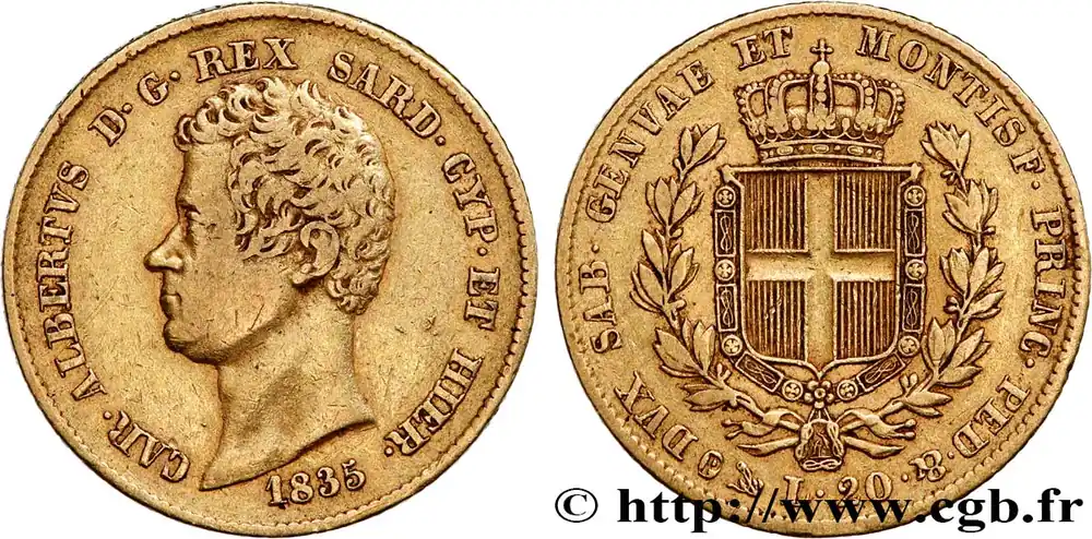 OR, PALLADIUM ET PLATINE INVESTISSEMENT 20 Lire Charles-Albert 1835 Gênes fwo_881715 Monde Meilleur Choix