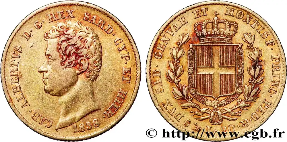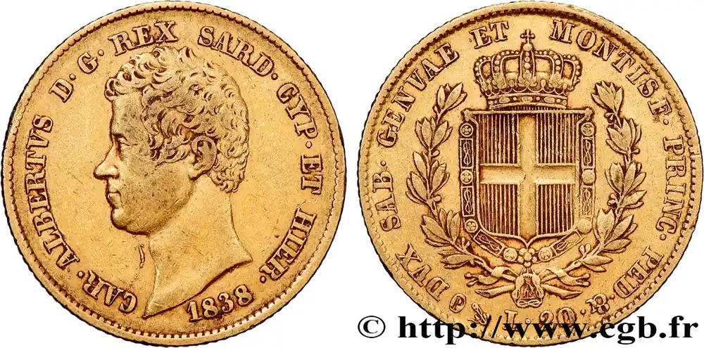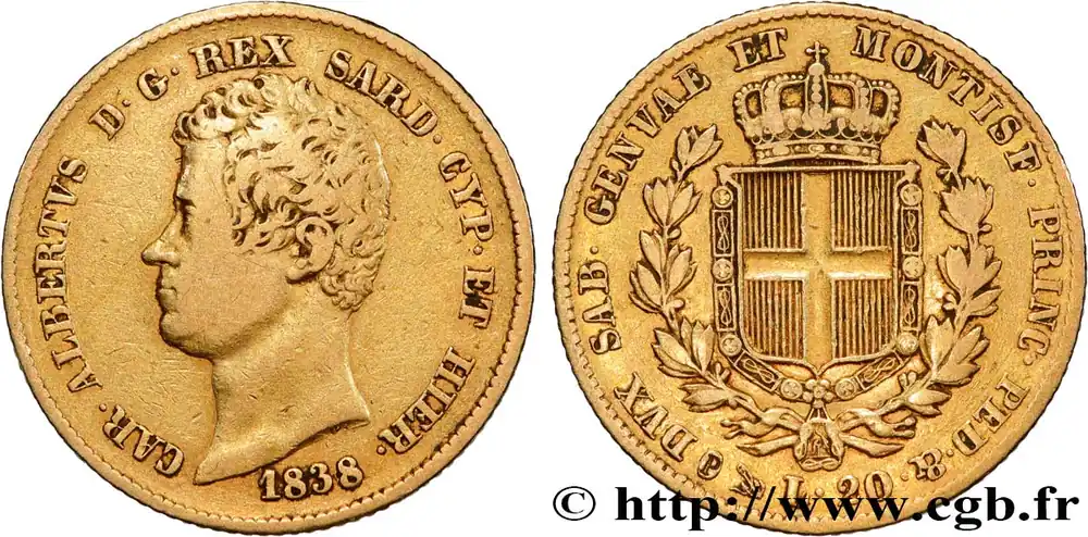 OR, PALLADIUM ET PLATINE INVESTISSEMENT 20 Lire Charles-Albert 1838 Gênes fwo_834558 Monde Acheter En Ligne