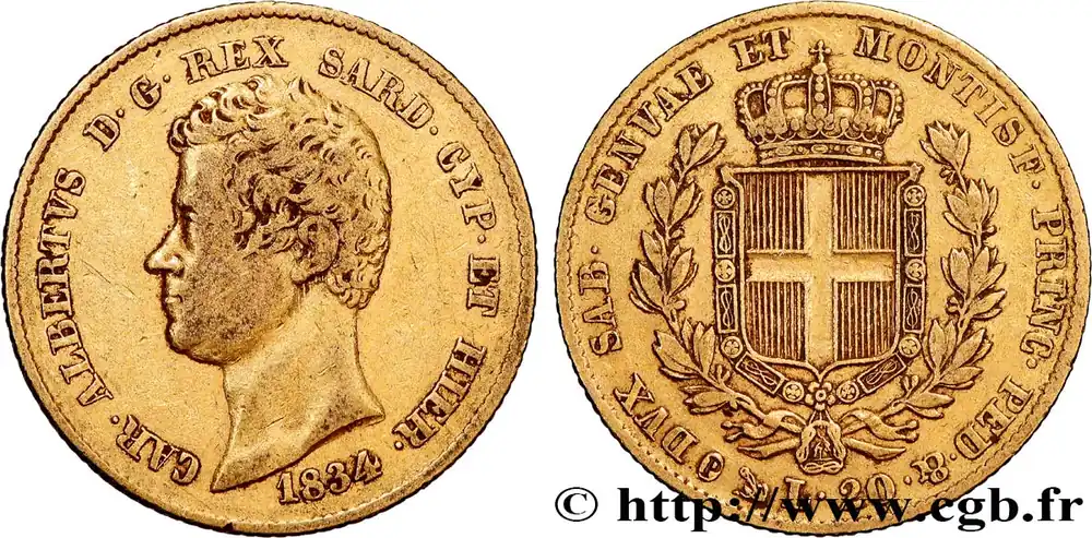 OR, PALLADIUM ET PLATINE INVESTISSEMENT 20 Lire Charles-Albert 1834 Gênes fwo_864285 Monde Exclusif
