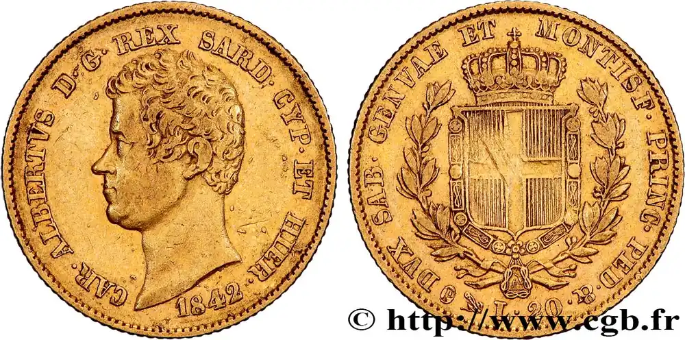 OR, PALLADIUM ET PLATINE INVESTISSEMENT 20 Lire Charles-Albert 1842 Gênes fwo_834560 Monde Satisfait Ou Remboursé