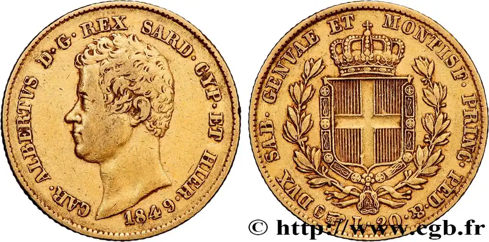 Livraison Gratuite ITALIE – ROYAUME DE SARDAIGNE 20 Lire Charles-Albert 1847 Gênes fwo_562310 Monde