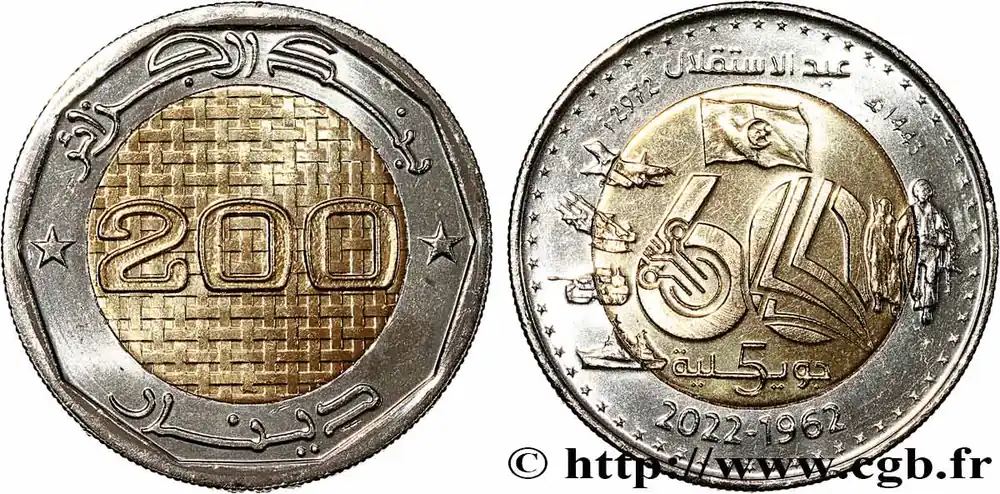 ALGÉRIE 200 Dinars 60e anniversaire de l’indépendance an 1443 2022 fwo_786354 Monde Livraison Express