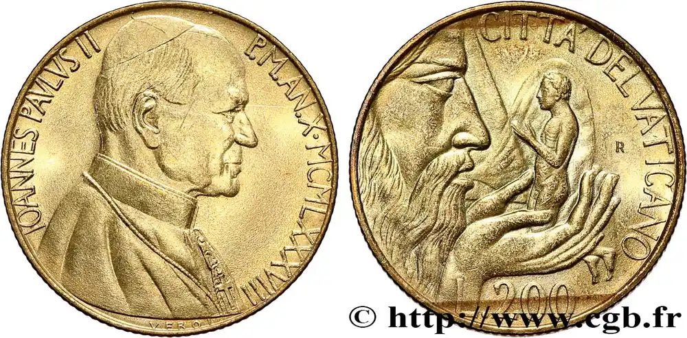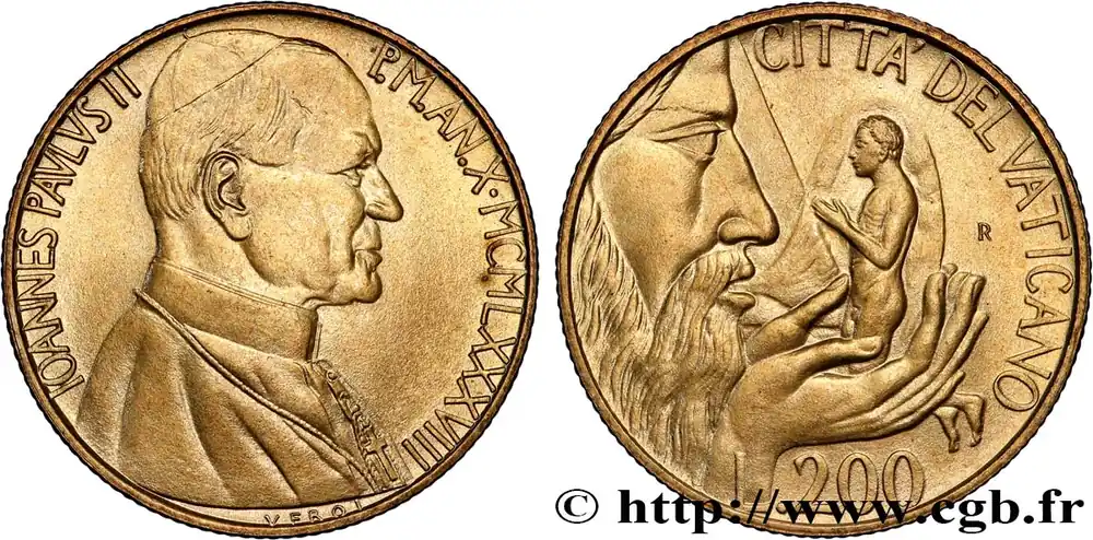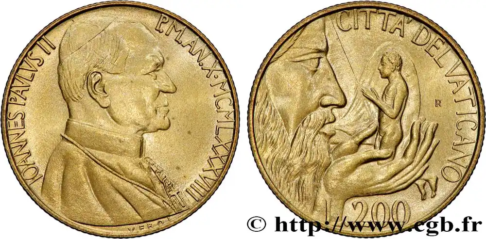 VATICAN ET ÉTATS PONTIFICAUX 200 Lire Jean Paul II an X 1988 Rome fwo_789282 Monde Populaire