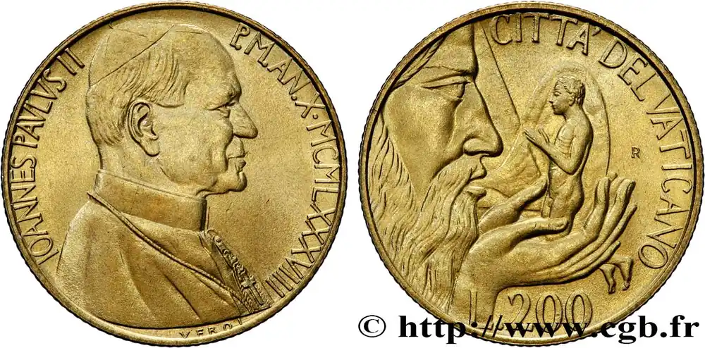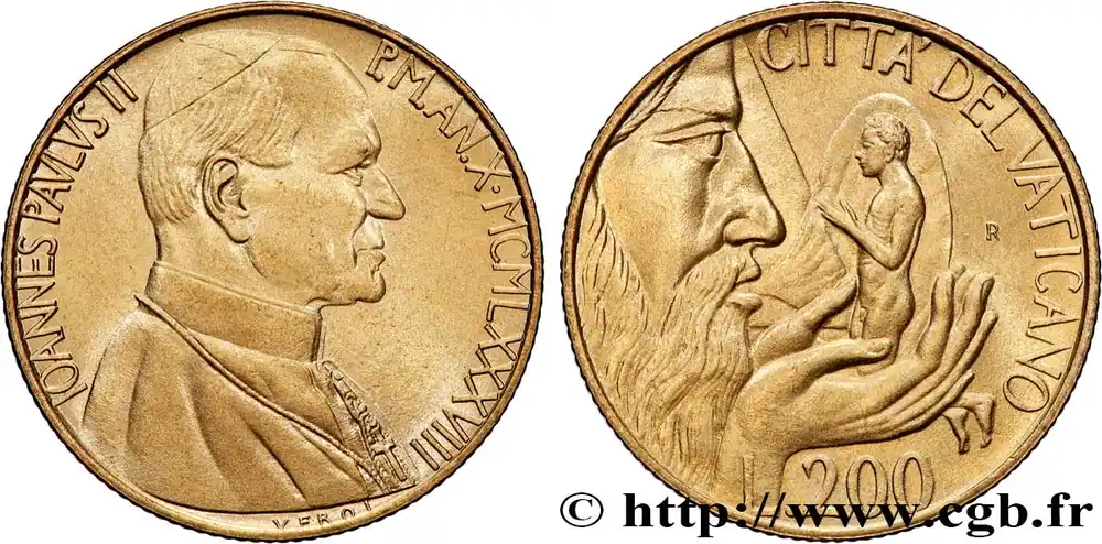 VATICAN ET ÉTATS PONTIFICAUX 200 Lire Jean Paul II an X 1988 Rome fwo_879676 Monde Bon Marché
