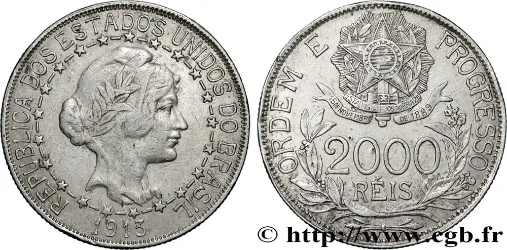 BRÉSIL 2000 Reis “Liberté” 1913 fwo_841385 Monde Prix Choc