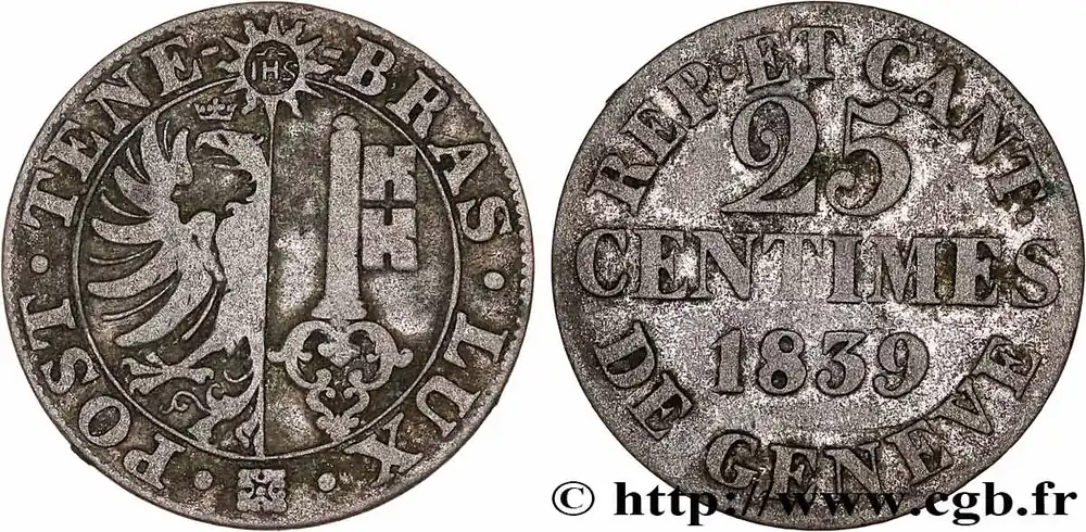 SUISSE – RÉPUBLIQUE DE GENÈVE 25 Centimes 1839 fwo_758241 Monde Certifié