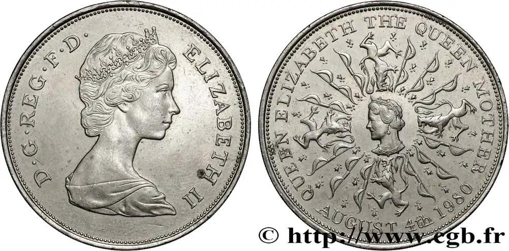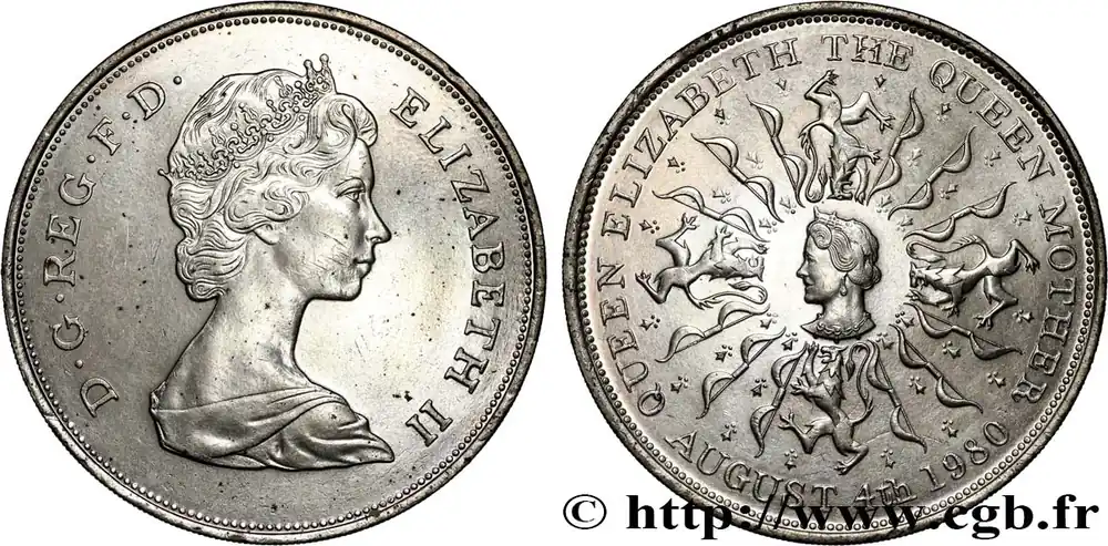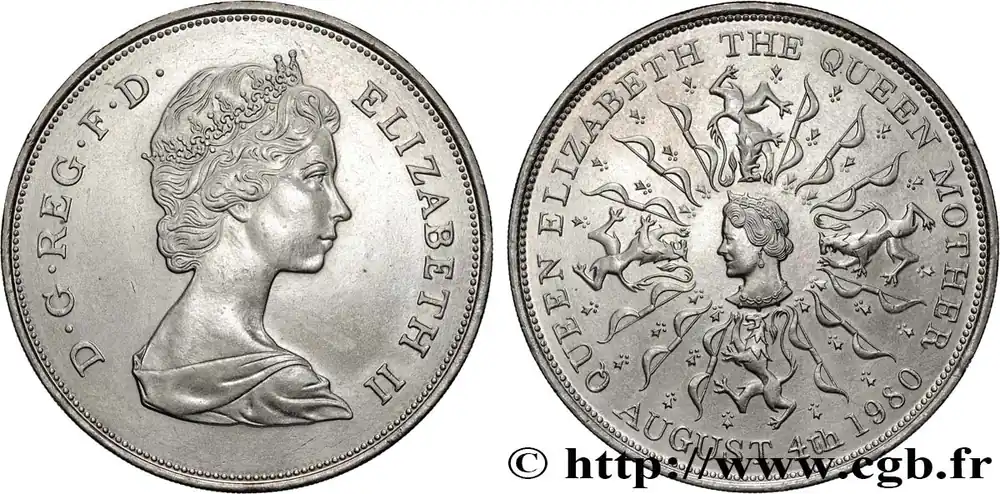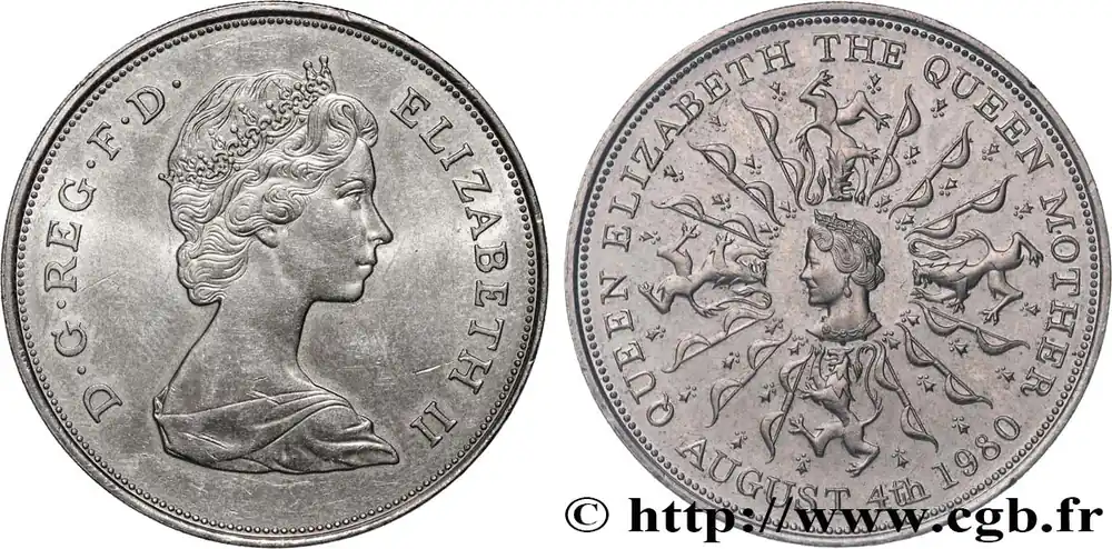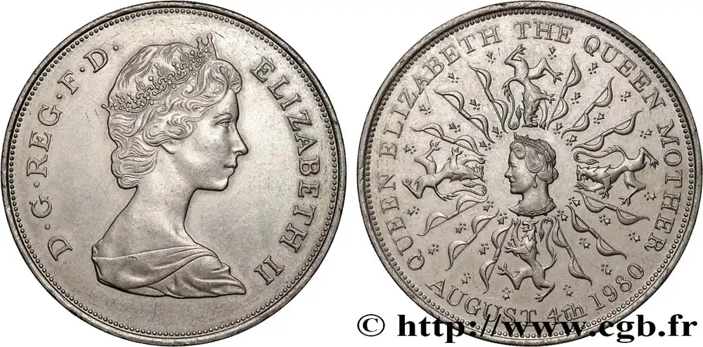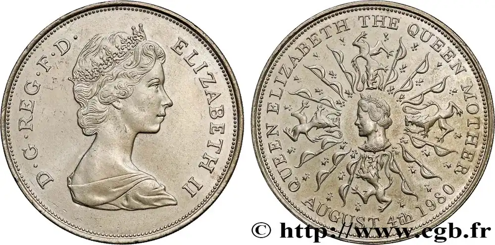25 New Pence (1 Crown) 80e anniversaire de la reine mère