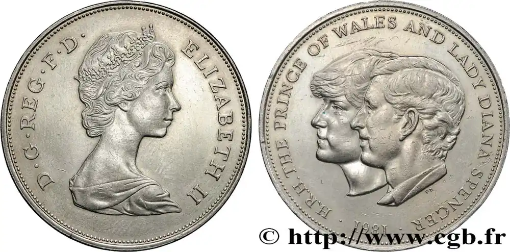 Petit Prix ROYAUME-UNI 25 New Pence (1 Crown) mariage du Prince de Galles et de Lady Diana Spencer 1981 fwo_758774 Monde