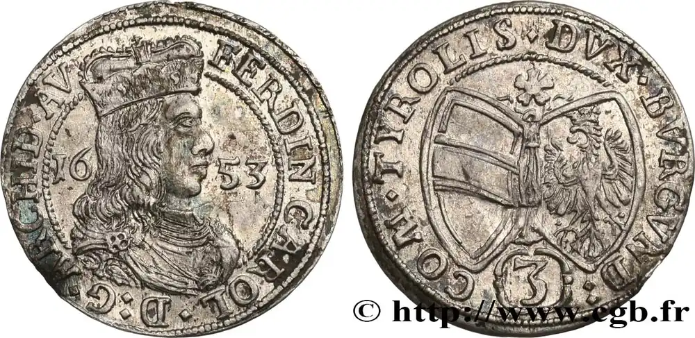 Bon Plan AUTRICHE – TYROL – FERDINAND-CHARLES 3 Kreuzer 1653 Hall fwo_603996 Monde