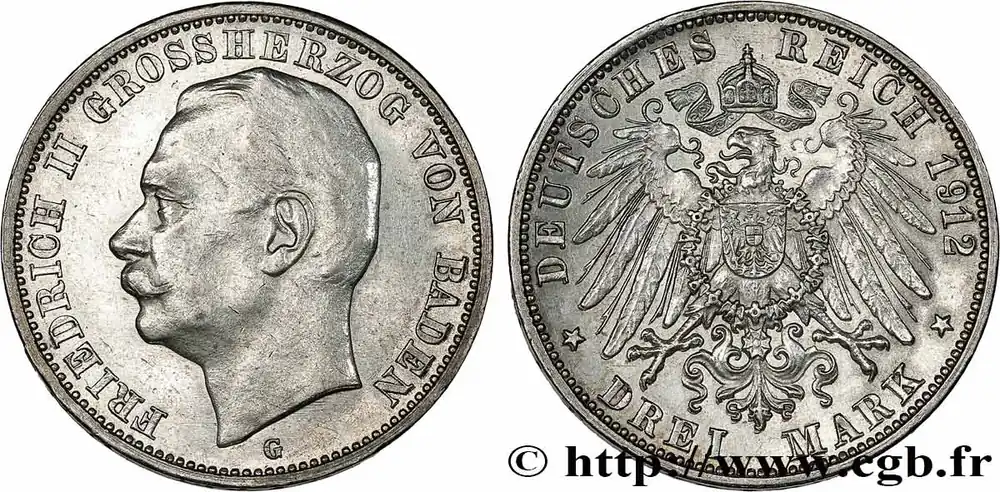 ALLEMAGNE – BADE 3 Mark Frédéric II 1912 Karlsruhe fwo_737171 Monde Dernier Modèle