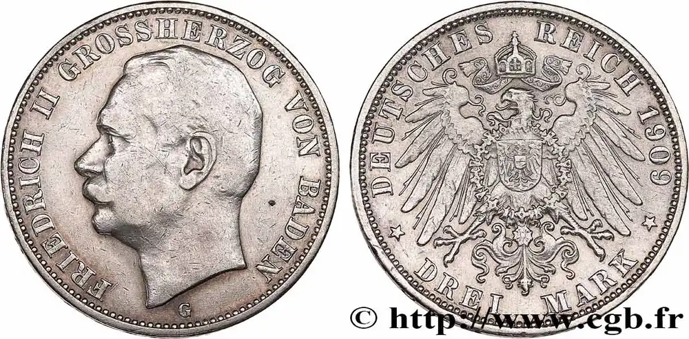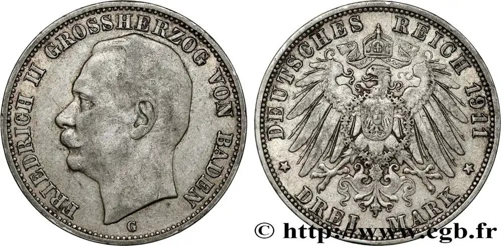 ALLEMAGNE – BADE 3 Mark Frédéric II 1911 Karlsruhe fwo_851897 Monde Dernière Chance