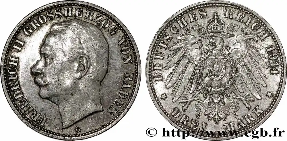 ALLEMAGNE – BADE 3 Mark Frédéric II 1914 Karlsruhe fwo_782923 Monde Acheter Direct