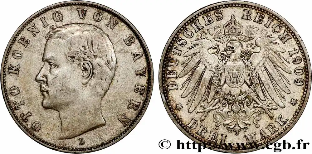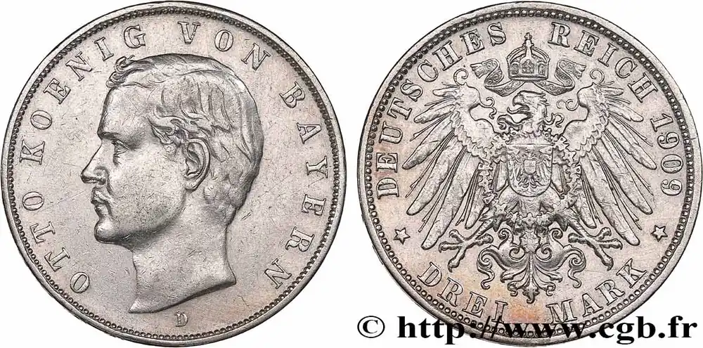 ALLEMAGNE – BAVIÈRE 3 Mark Othon Ier 1909 Munich fwo_771215 Monde Marque