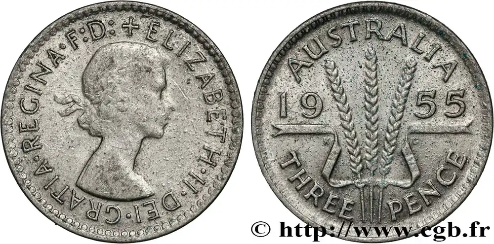 AUSTRALIE 3 Pence Elisabeth II 1955 Melbourne fwo_847767 Monde Produit De Marque