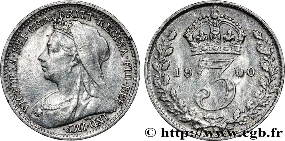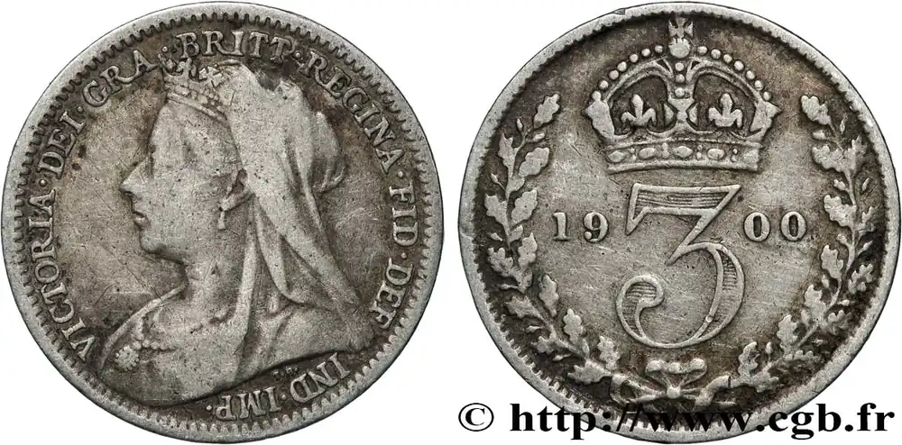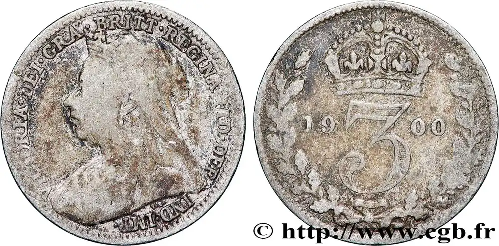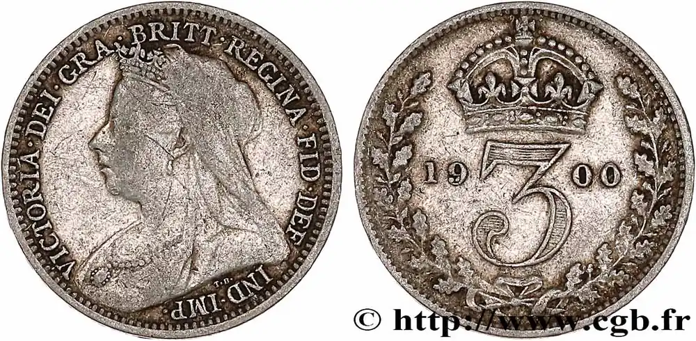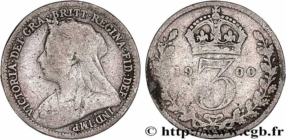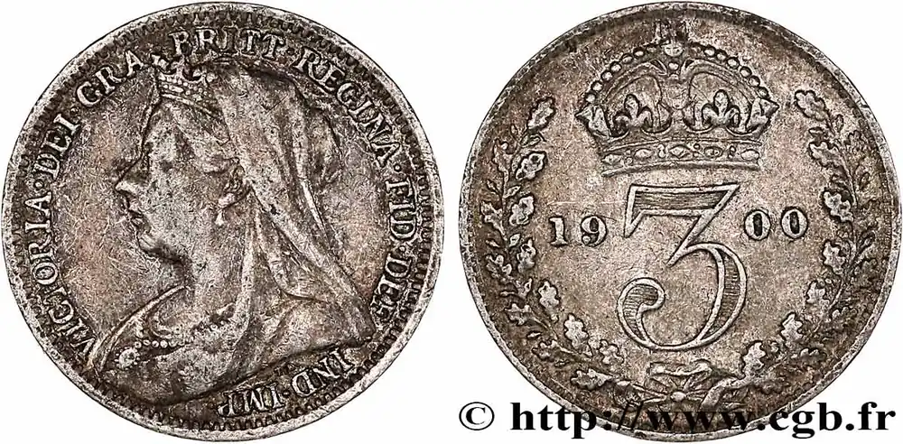 ROYAUME-UNI 3 Pence Victoria buste au voile 1900 fwo_775093 Monde En Vogue