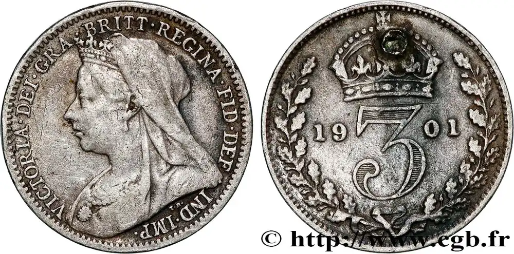 Commande En Gros ROYAUME-UNI 3 Pence Victoria buste au voile 1901 fwo_758607 Monde