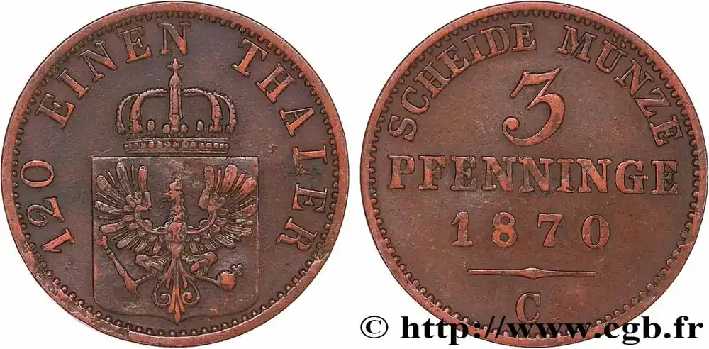 ALLEMAGNE – PRUSSE 3 Pfenninge Royaume de Prusse écu à l’aigle 1870 Francfort – C fwo_778156 Monde Prix Promo