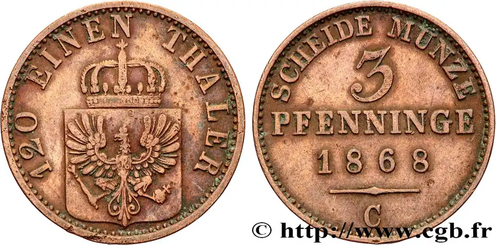 ALLEMAGNE – PRUSSE 3 Pfenninge Royaume de Prusse écu à l’aigle 1868 Francfort – C fwo_816597 Monde Nouveauté