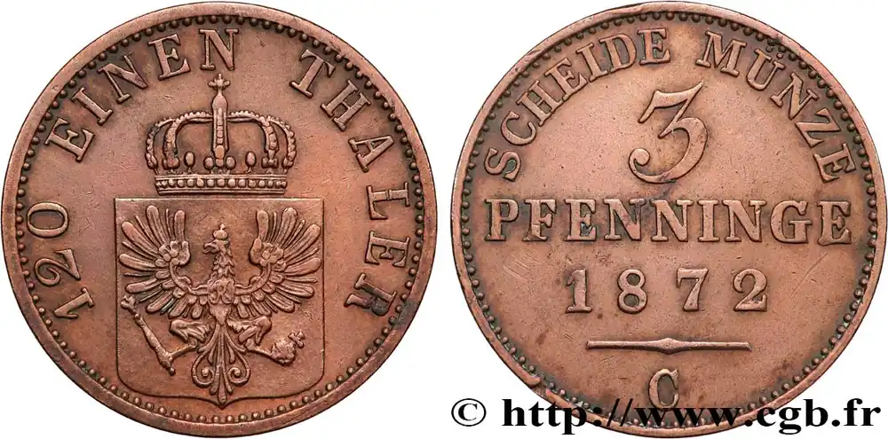ALLEMAGNE – PRUSSE 3 Pfenninge Royaume de Prusse écu à l’aigle 1872 Francfort – C fwo_860860 Monde Commander Maintenant