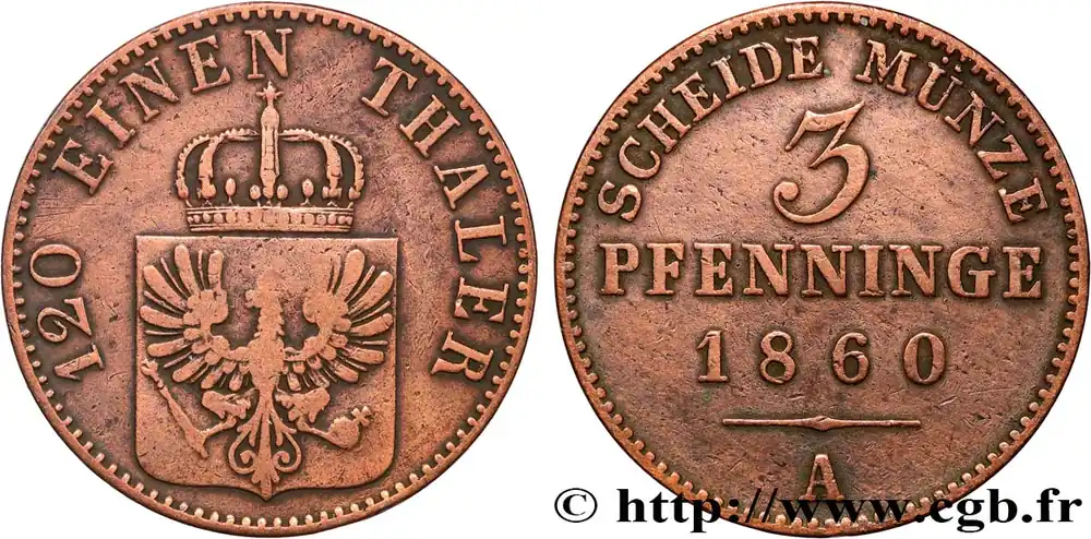 ALLEMAGNE – PRUSSE 3 Pfenninge Royaume de Prusse écu à l’aigle 1860 Berlin fwo_882383 Monde Meilleur Prix