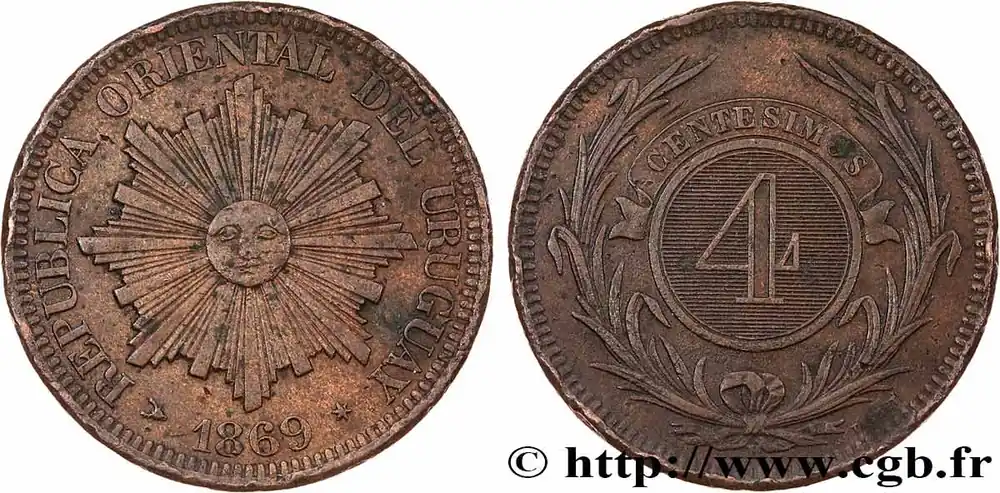 Usine Directe URUGUAY 4 Centesimos 1869 Paris fwo_786388 Monde