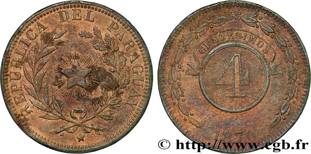 PARAGUAY 4 Centesimos 1870 Heaton fwo_846056 Monde Solde