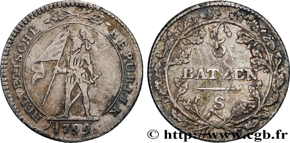 SUISSE – RÉPUBLIQUE HELVÉTIQUE 5 Batzen 1799 Soleure fwo_834634 Monde Certifié