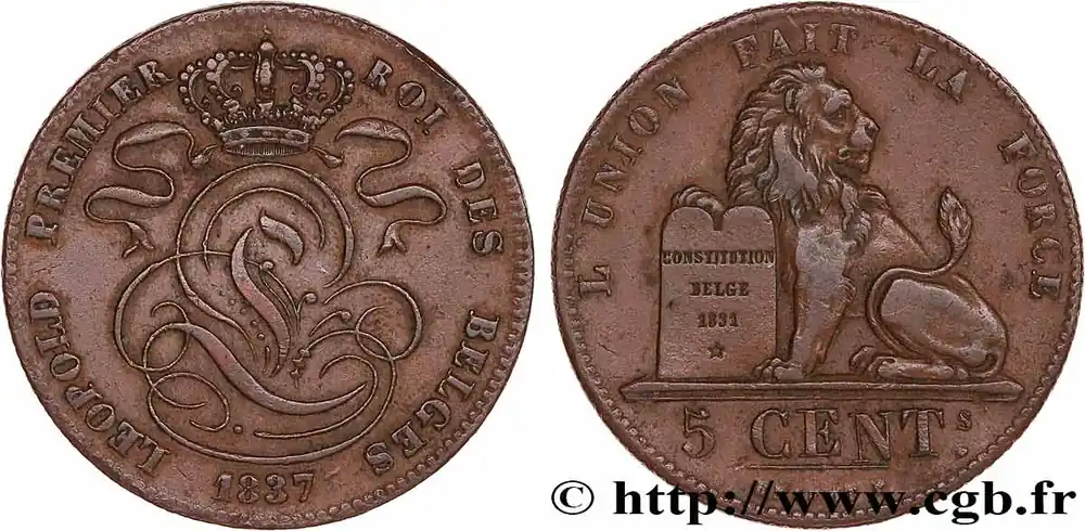 BELGIQUE 5 Centimes Léopold Ier 1837 fwo_779859 Monde Garantie Incluse
