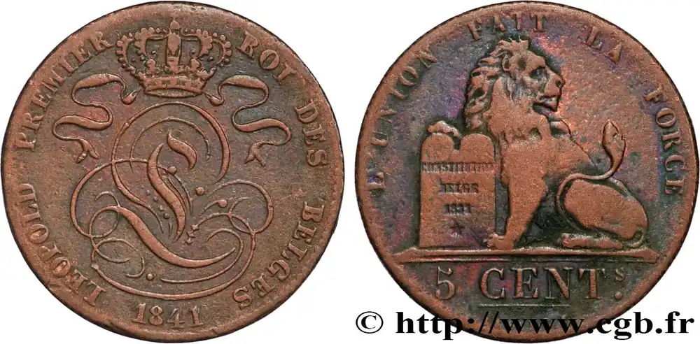 BELGIQUE 5 Centimes Léopold Ier 1841 fwo_846909 Monde Retour Gratuit