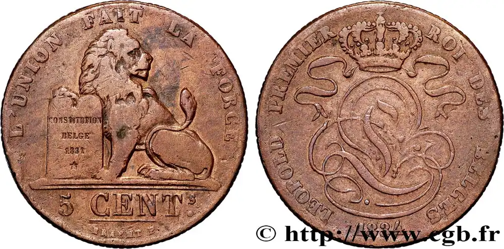 BELGIQUE 5 Centimes Léopold Ier 1834 fwo_834705 Monde Top Qualité