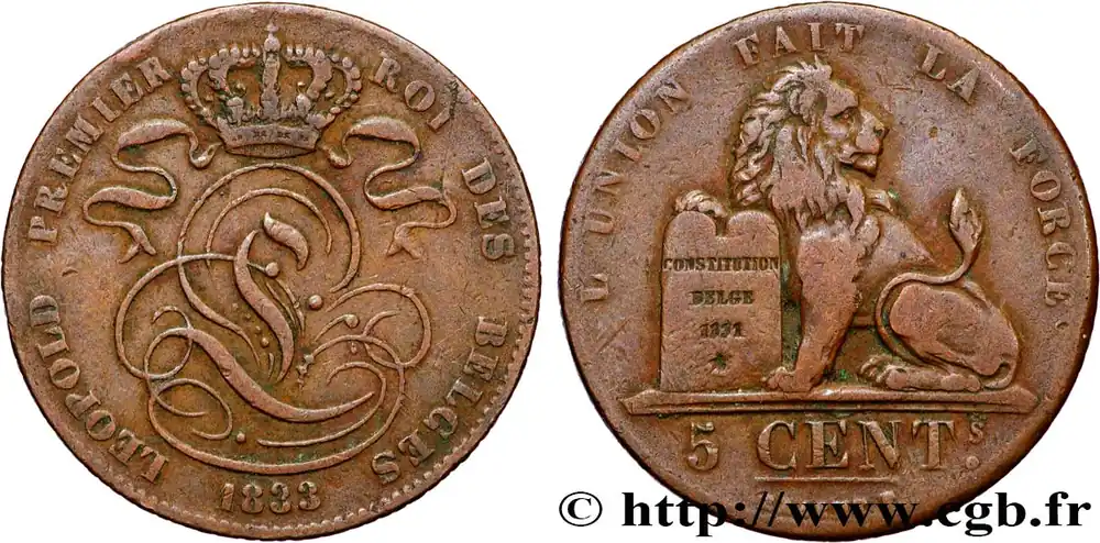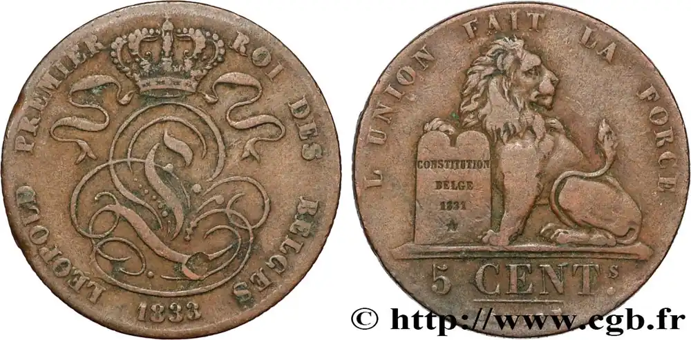 Nouvelle Collection BELGIQUE 5 Centimes Léopold Ier 1833 fwo_854742 Monde