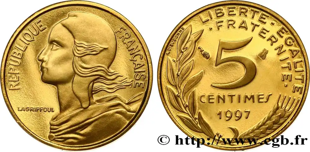 5 centimes Marianne, BE (Belle Épreuve), 4 plis 1997 Pessac F.125/40 var. fmd_585791 Modernes Meilleure Qualité