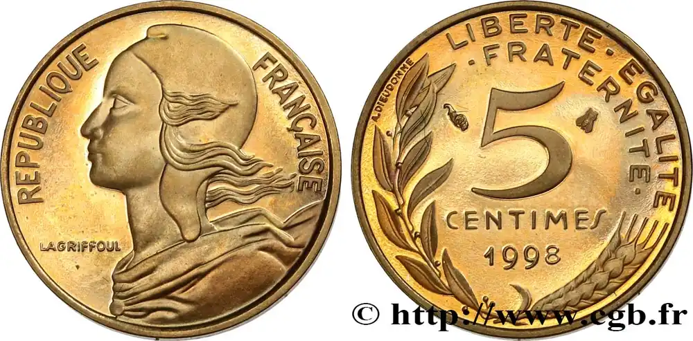 5 centimes Marianne, BE (Belle Épreuve), 4 plis 1998 Pessac F.125/41 var. fmd_559587 Modernes Satisfait Ou Remboursé