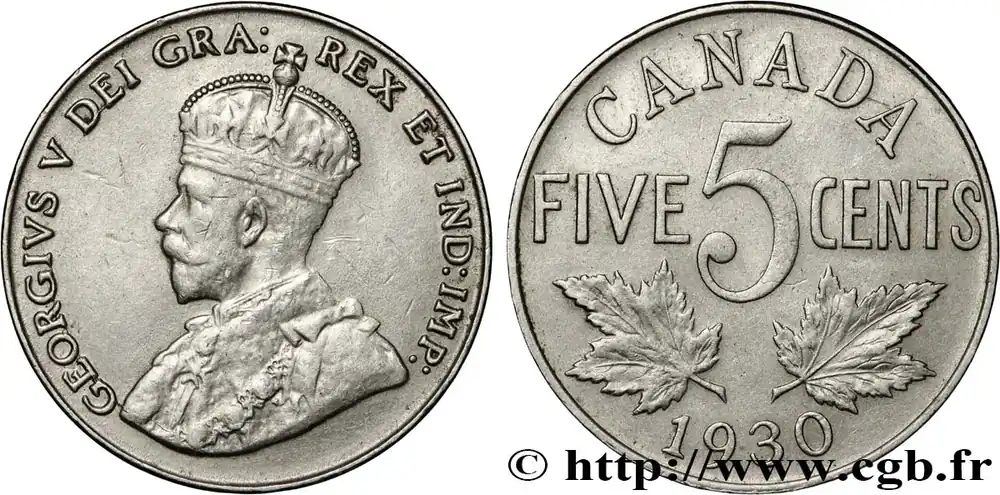 CANADA 5 Cents Georges V 1930 fwo_853717 Monde Retour Gratuit