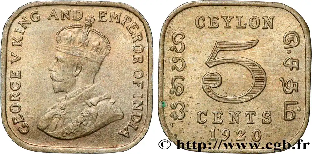 CEYLAN 5 Cents Georges V 1920 fwo_847793 Monde Prix Promo