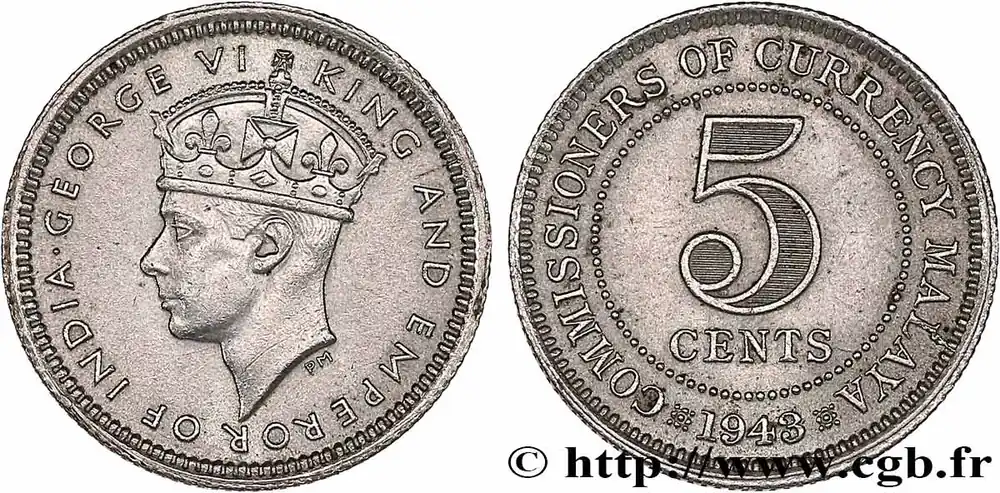 MALAISIE 5 Cents Georges VI 1943 Londres fwo_768857 Monde Prix Réduit