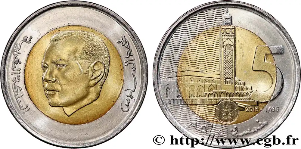 5 Dirhams roi Mohammed VI / mosquée Hassan II AH 1436