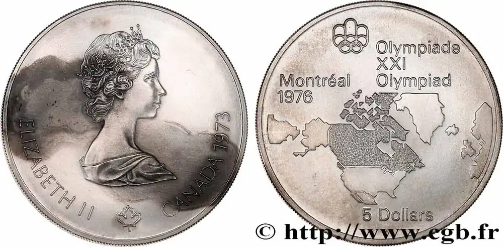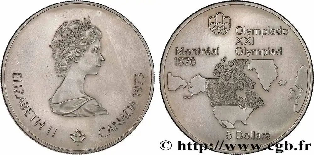 CANADA 5 Dollars JO Montréal 1976 carte de l’Amérique du Nord 1973 fwo_795361 Monde Remise