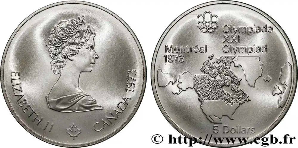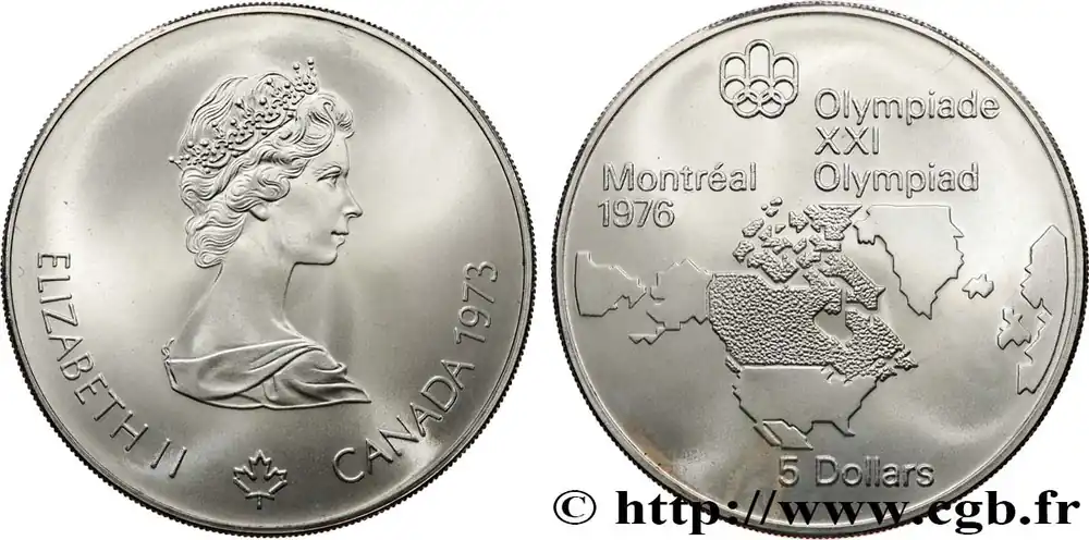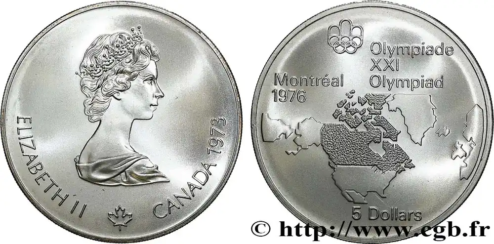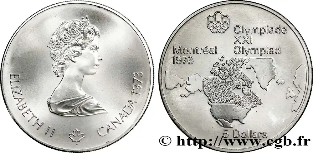 CANADA 5 Dollars JO Montréal 1976 carte de l’Amérique du Nord 1973 fwo_770680 Monde Remise