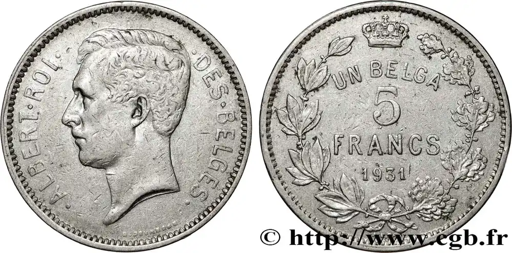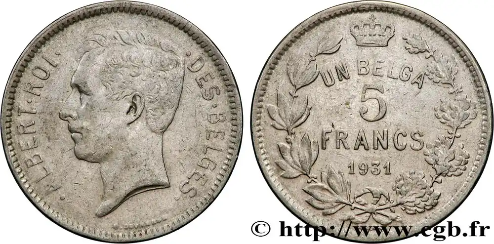 BELGIQUE 5 Francs – 1 Belga Albert Ier légende Française 1931 fwo_896091 Monde Promotion Saisonnière