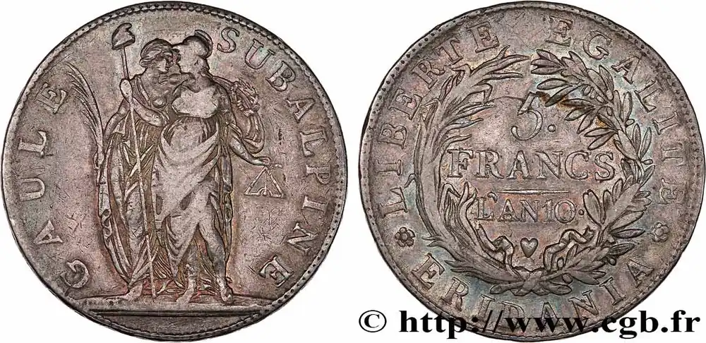 ITALIE – GAULE SUBALPINE 5 Francs an 10 1802 Turin fwo_764606 Monde Gros Lot