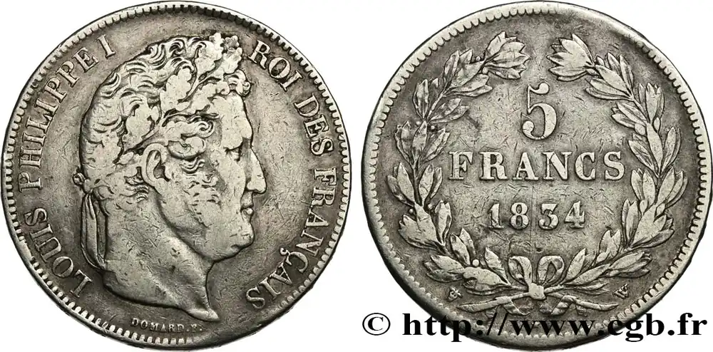 5 francs IIe type Domard 1834 Lille F.324/41 fmd_617870 Modernes Meilleur Prix